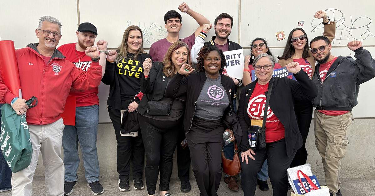 AFA-CWA International President Sara Nelson emceed the event and highlighted Delta Airlines workers’ efforts to form their union and bargain a first contract. She was joined by speakers from several labor unions, including President of the American Federation of Teachers Randi Weingarten, SEIU Local 32BJ Executive Board Member Ardist Brown, Amazon Labor Union President Connor Spence, and Writers Guild of America East Vice President Sara David-Hess.