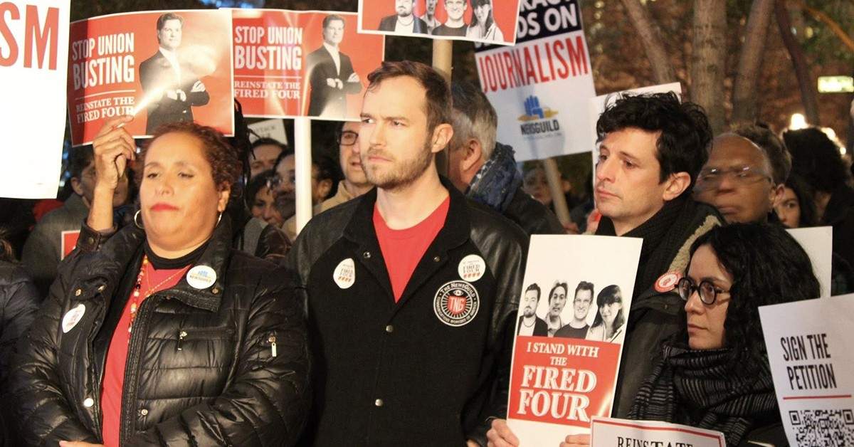 NewsGuild of New York members are asking supporters to sign a petition demanding the immediate reinstatement of the Fired Four, the reversal of the suspensions, and for the company to pay out lost wages and benefits. Click here to sign the petition.